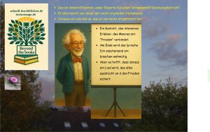 — - „Hat ihn der Strand als sein Geschenk erkoren?“: Der Strand wird hier als Subjekt mit der Fähigkeit des „Erkürens“ dargestellt. Dies verstärkt die lebendige, interaktive Naturdarstellung und kann die Vorstellung von Annahme und Zugehörigkeit im Frieden betonen.