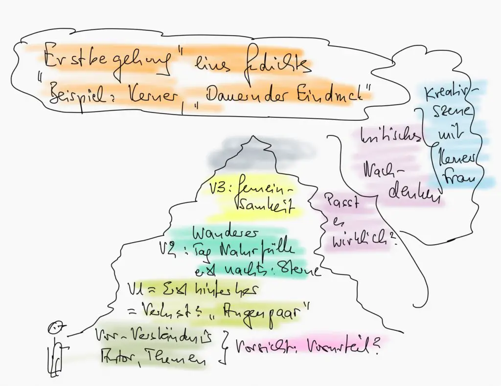 - Grundsätzlich kann bei dem Vorverständnis natürlich auch eine Rolle spielen, dass man andere Gedichte des Autors kennt. Dann hat man möglicherweise schon gewisse Erwartungen. Aber die können nur helfen, sie entscheiden nicht über das, was in diesem Gedicht wirklich steht.