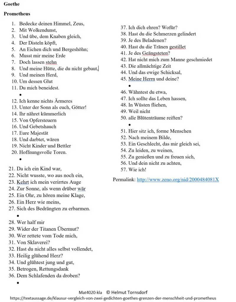 Hier zunächst Screenshots der beiden Gedichte. Dabei wird davon ausgegangen, dass das Gedicht Prometheus im Unterricht bereits behandelt worden ist. Es wird hier nur vorgelegt, damit sein Inhalt und auch Wortlaut nicht aus dem Gedächtnis rekonstruiert werden muss.
