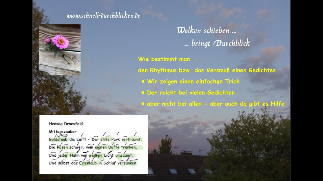 Gedichtanalyse ist schon schwer genug - aber wenn es dann auch noch um den Rhythmus geht, dann hört es für viele auf - und das große Raten beginnt.