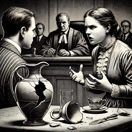 - Das sieht man hier in diesem Bild zu einer Szene in der Komödie „Der zerbrochene Krug“.