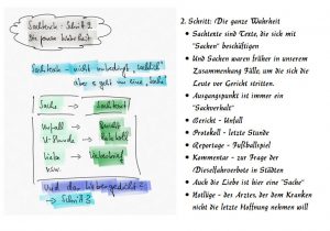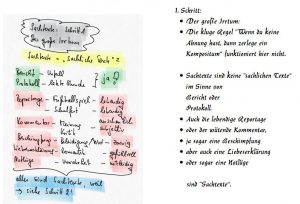 - 0:36: Bei „Sach-Texte“ heißt der erste Teil nicht, dass diese Texte „sachlich“ sein müssen. Siehe die lebendige Reportage oder der Kommentar mit einer eigenen Meinung.